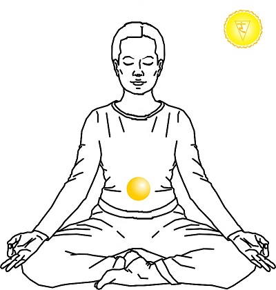 Solarni pleksus čakra- Manipura u živčanom centru iznad pupka lotos sa 10 latica. Kontrolira dotok energije u sve unutarnje organe ispod dijafragme i povezana je sa gusteračom.